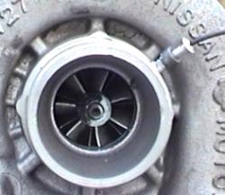 9 April 2000 -- Good news -- my gas turbine runs! Surprise, surprise -- after removing the camp-stove regulator on my propane tank which was severely restricting the gas-flow, the damned thing burst into life with only a few prods of the leaf blower. I've created a 4MB AVI file using MPEG encoding, a 1MB Quicktime movie, and a 800K RealVideo file that you can download and view to see the first test run. Unfortunately the RealVideo server isn't working at the moment but when it is I'll put up some smaller streaming files. During the video you'll see me turn on the oil pump and set the pressure (you'll hear the noisy motor grinding away) then I apply the leaf-blower It surprised me just how much fuel was needed to even get an idle out of the engine so it takes several attempts to get the engine up to sustainable revs. Once it's running I turn up the oil pressure to 40 PSI. To prove it's not all done with smoke and mirrors, I drop a rag into the exhaust stream -- then have to go chase after it. The hot gasses blew it some 50 feet! As I've realised in subsequent runs, during this first trial, the engine was running at little more than 1/4 throttle with just 10 PSI of compressor boost. If you listen carefully you'll hear the engine throttle up just a little before I turn it off and it spools down. That noise you can hear once it stops is the oil pump still going. In subsequent runs I've had the compressor boost pressure gauge pegged to the stop with over 40PSI -- now that's an experience, you can feel the noise in your body and it's still very loud even with industrial ear-muffs on. Today I have a headache and my ears are still ringing :-( Like so many others, I've based this engine on a regular car turbocharger unit (mine came out of Nissan) and simply linked the compressor output to the exhaust turbine input using a combustion chamber. As you can see from the pictures on this page, it looks much the same as almost all the other DIY gas turbine engines that have been documented on the Web. Since the the flame tube is one of the most important components in any gas turbine engine, I've included some images and description of my design which seems to work very well indeed. I'll post some more pages detailing the other components as I get time over the next week or so. Here are some static images of the engine before it was finished.