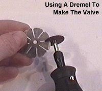 This is made from thin shim-steel, in this case I'm using 0.006" material and that posed a problem -- how to cut it without introducing distortion. Remember, this valve has to seal against the back of the intake venturi so it shouldn't have any of the wavey edges you often get when using snips. I ended up using snips to cut the blank disk to slightly over-size. I then ground it down to the required diameter using the Dremel and a grinding wheel. Creating the petals (there's one for each hole in the venturi block) was done using a thin cut-off disk in the Dremel. This was pretty easy and I found it best to work "freehand" rather than trying to clamp the disk in a vice or against another surface. One hint -- keep don't let the shaft of the Dremel drop below the surface of the disk or it will kick-up. Try to use just the bottom 1/3 of the cut-off disk to do the cutting and it works fine.